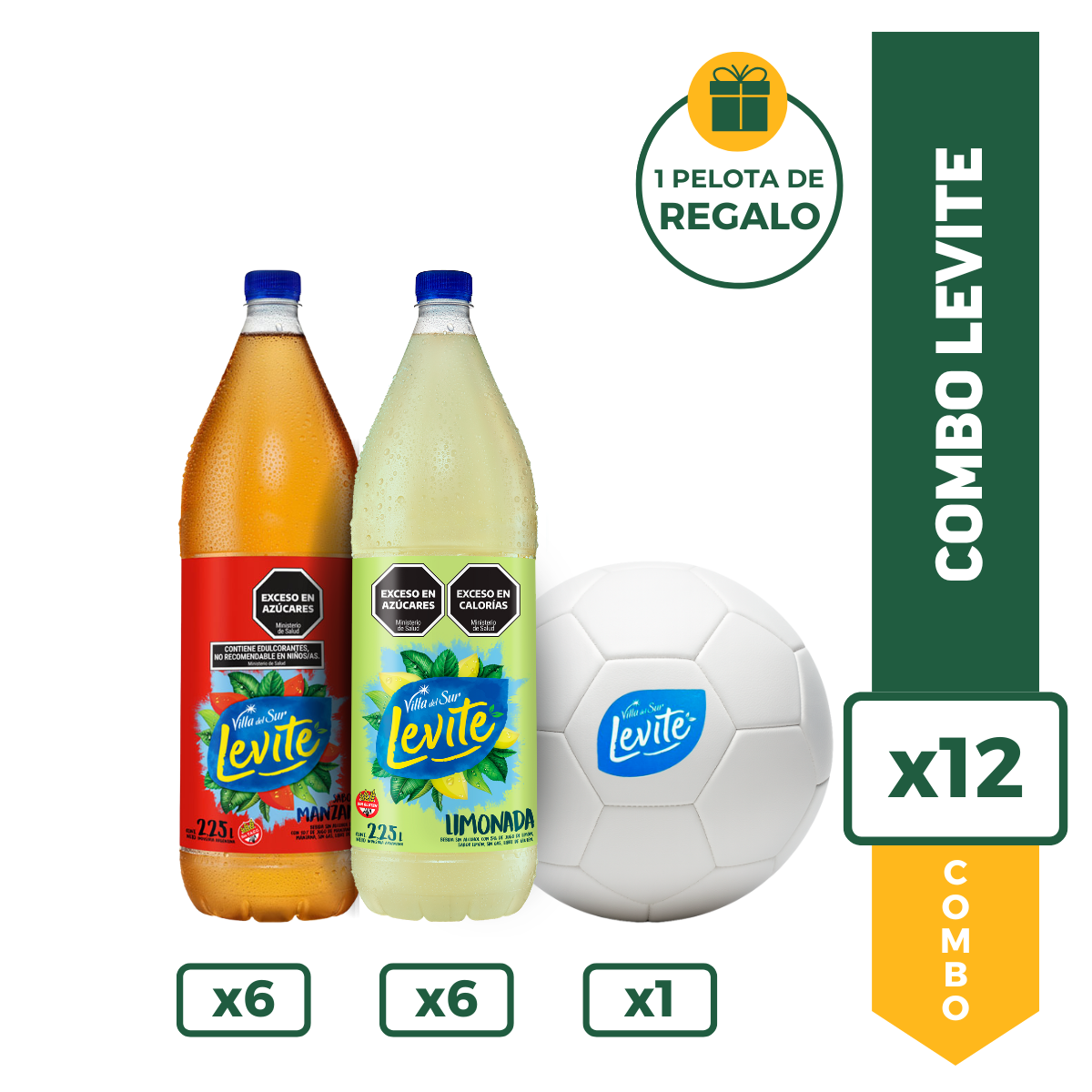 LEVITE LIMONADA 2250CC X6 + LEVITE MANZANA 2250CC + Pelota